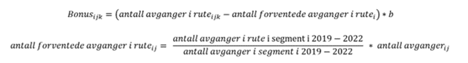 Dersom antall avganger i rute overstiger terskelverdien vil bonusen beregnes som følger: